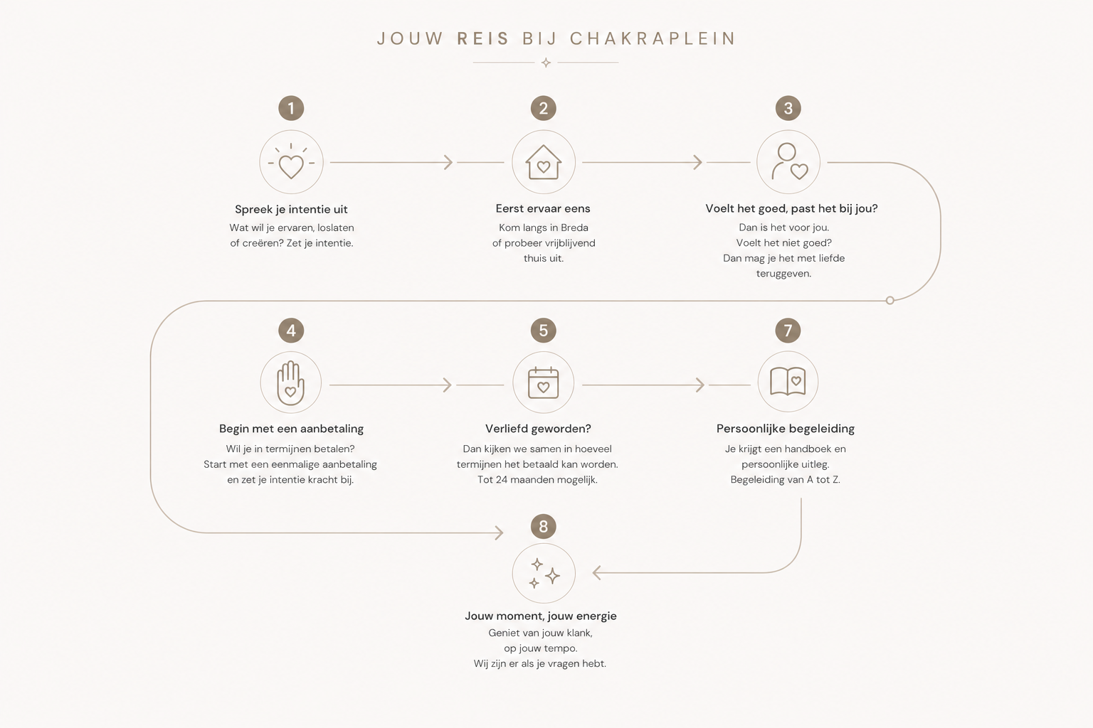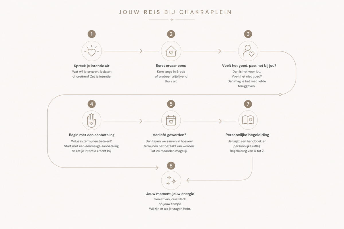 Bij Chakraplein geloven we dat iedereen toegang verdient tot helende klank, ongeacht wie je bent of waar je vandaan komt. Betaling in termijnen is altijd mogelijk, zodat jouw reis naar balans voor iedereen bereikbaar is.