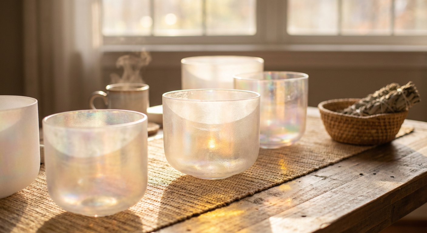 Deze set van zeven kristallen klankschalen met een subtiel alchemistisch glanseffect is afgestemd op de zeven chakra’s. Het zachte klankveld nodigt uit tot diepe ontspanning, intuïtief contact en energetische balans.